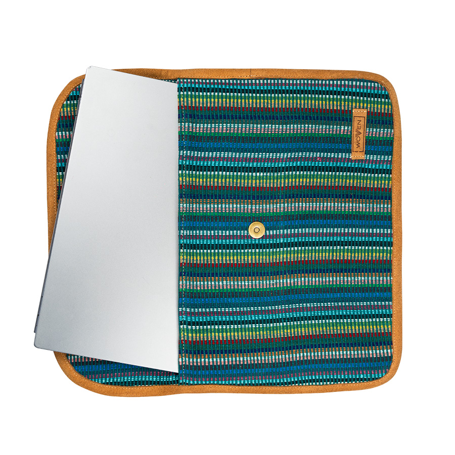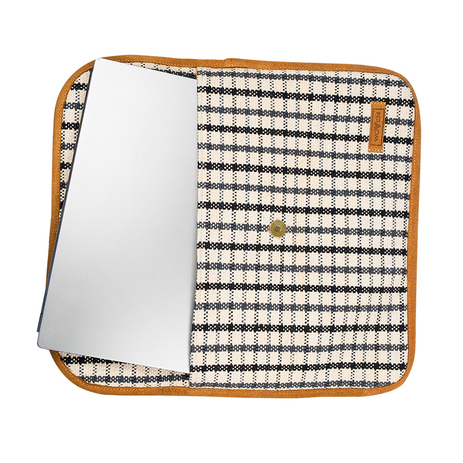 This 13–14” Luxury Handmade Woven Laptop/MacBook Case combines traditional craftsmanship with modern functionality. Made from 100% handwoven cotton, it features a strong, elegant leather border that adds durability and a premium finish.