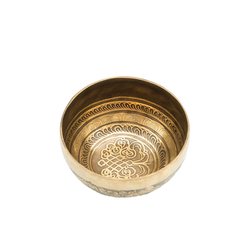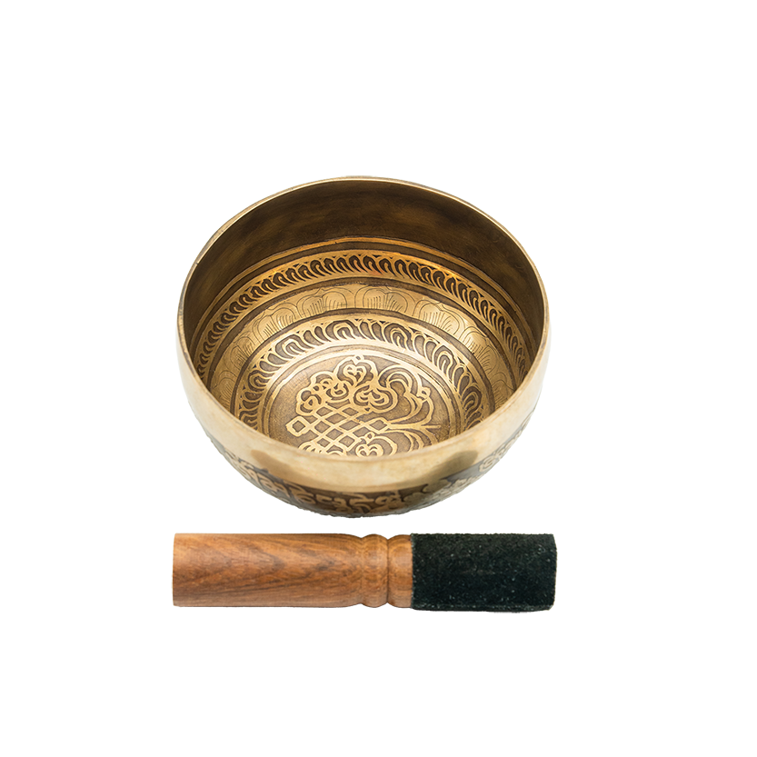 Handcrafted Tibetan Singing Bowl Set – Engraved Brass with Suede Mallet