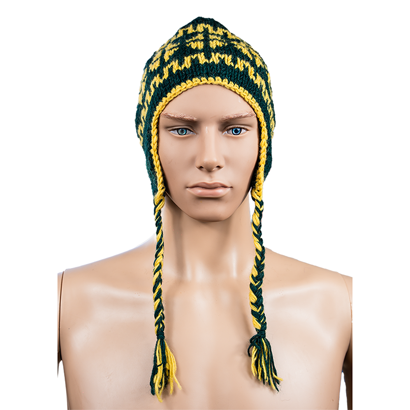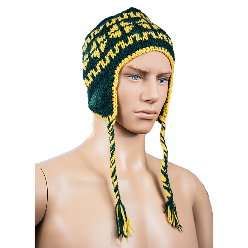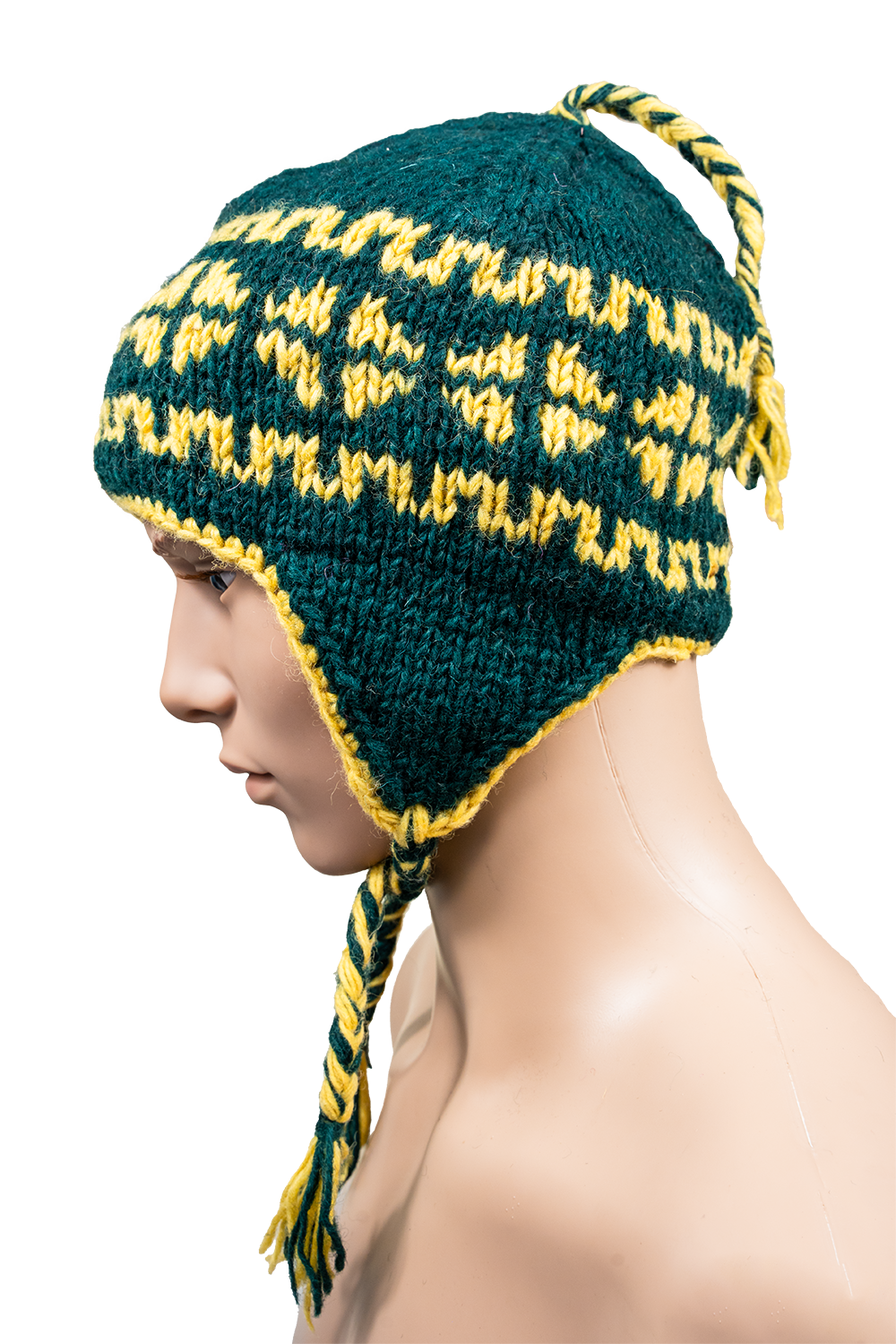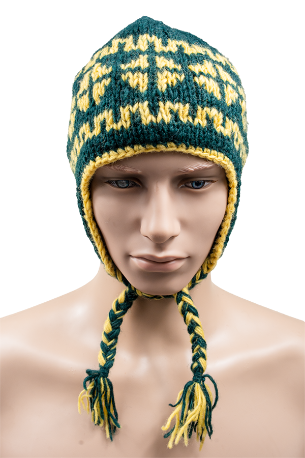 Handmade Nepali Woollen Hat – Green & Yellow Earflap Beanie | Winter Warm Hat