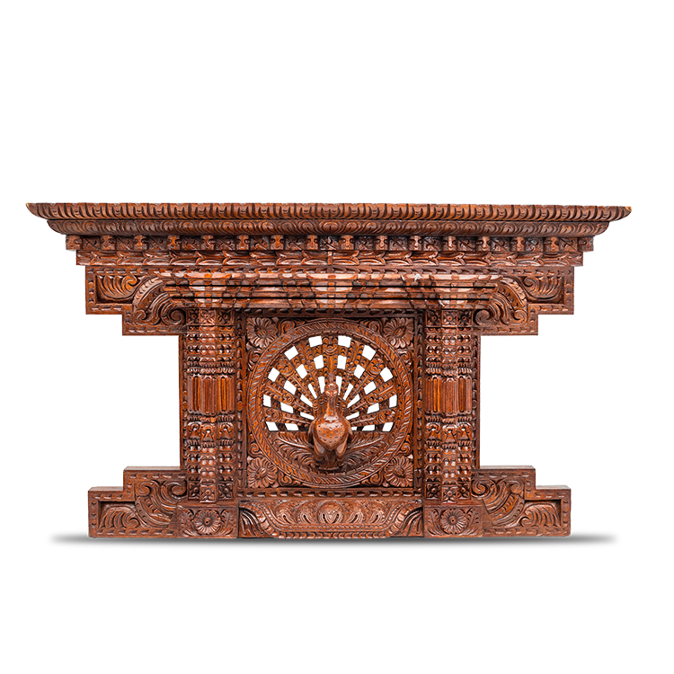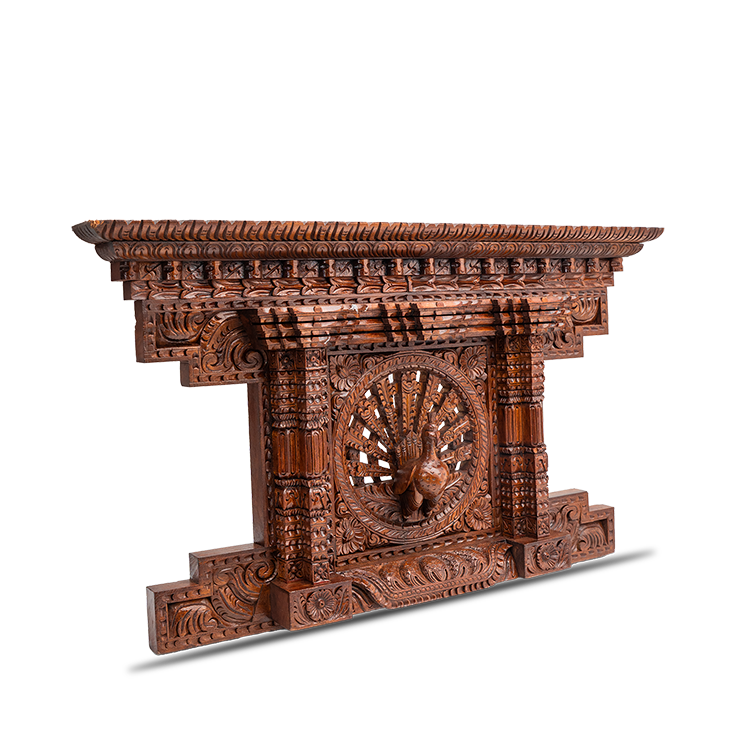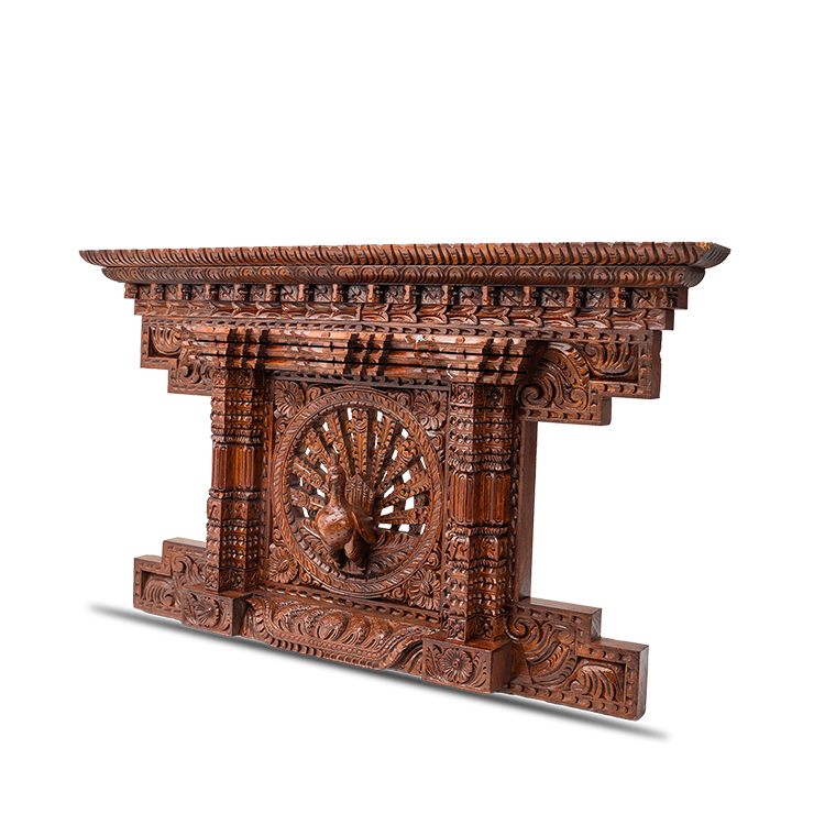 The Peacock Window Wooden Aankhijhyal is one of Nepal’s most celebrated symbols of Newari architecture and craftsmanship. Inspired by the famous Mayur Jhyal (Peacock Window) of Bhaktapur Durbar Square, this hand-carved wooden piece embodies centuries of artistic tradition and cultural pride.
