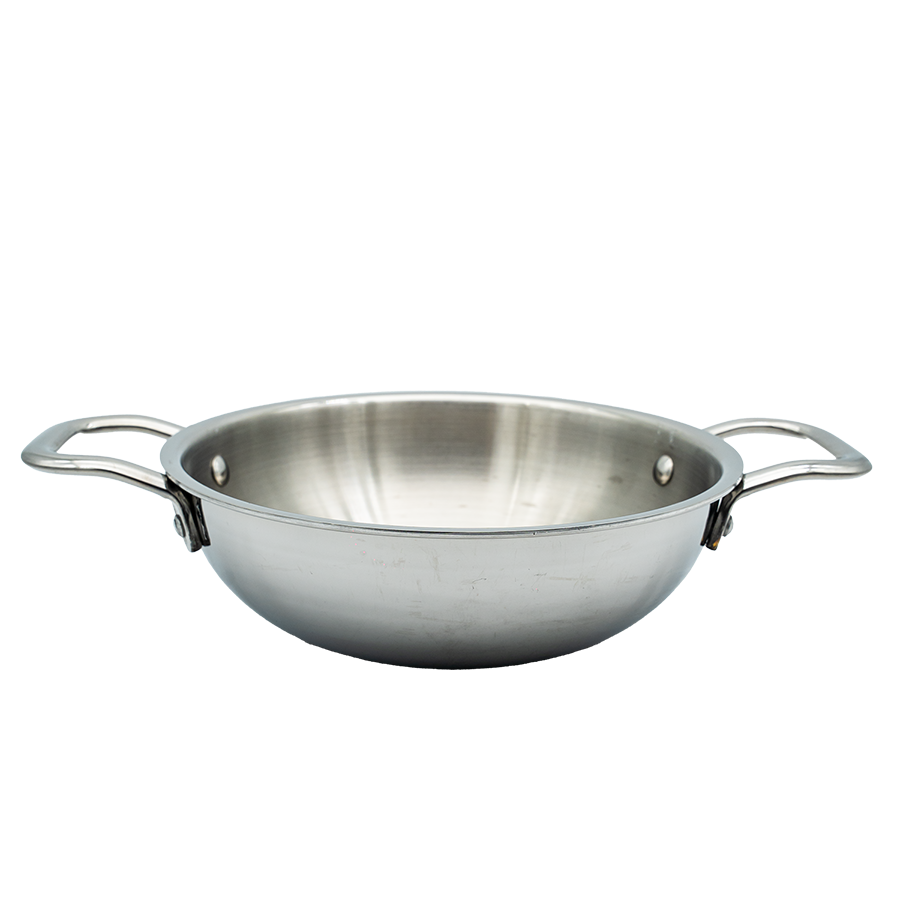 This karahi is ideal for preparing curries, stir-fries, and deep-fried dishes — from Nepali thakali tarkari to classic Indian paneer masala. Its mirror-finish surface resists stains and corrosion, while the sturdy side handles provide a secure grip for everyday kitchen use.