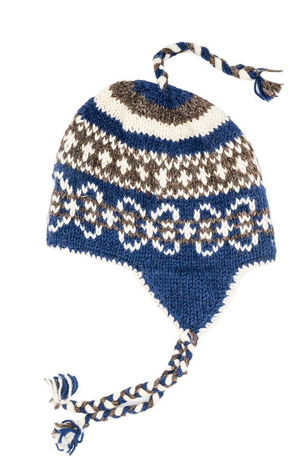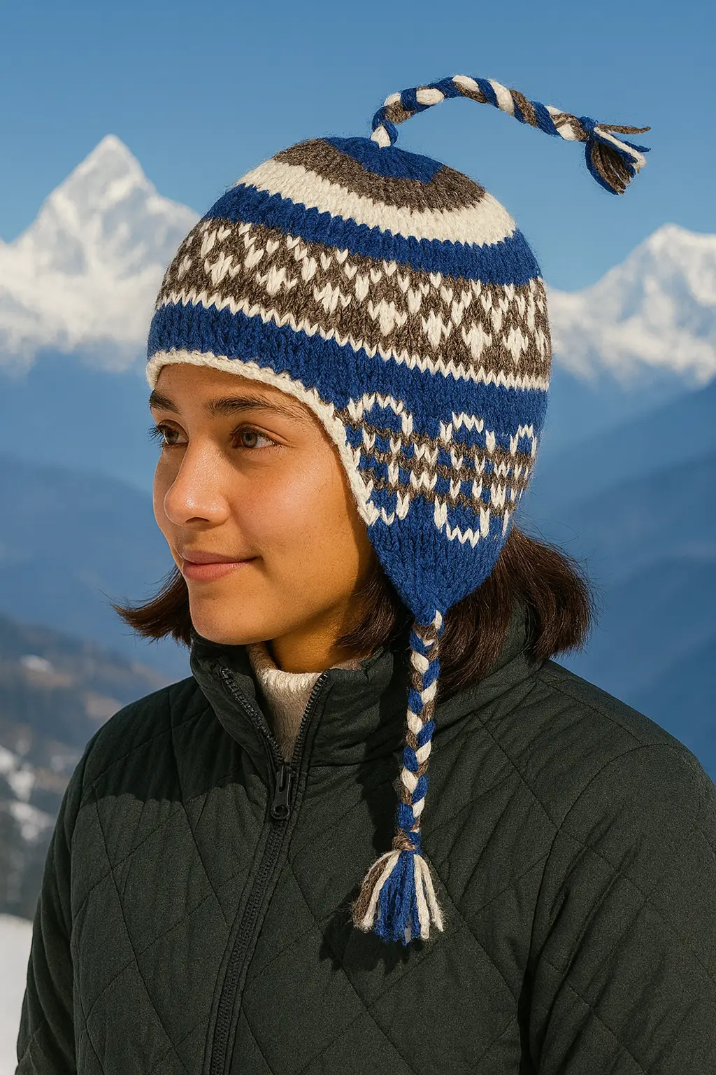 Unisex Wool Earflap Beanie – Hand Knitted Winter Hat with Braided Tassels